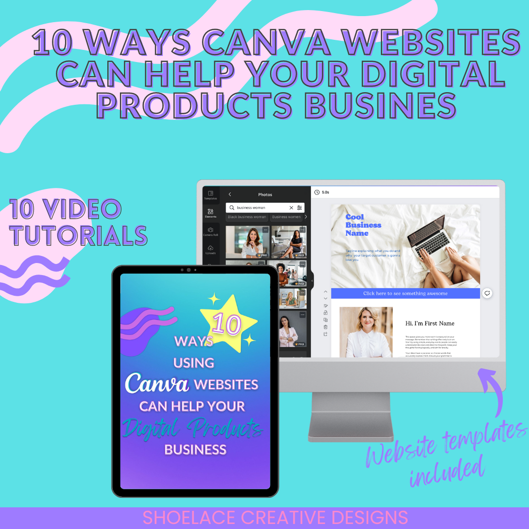 This course demonstrates 10 different ways to use free websites through Canva to help your digital products business. Video walkthroughs and website templates are included.